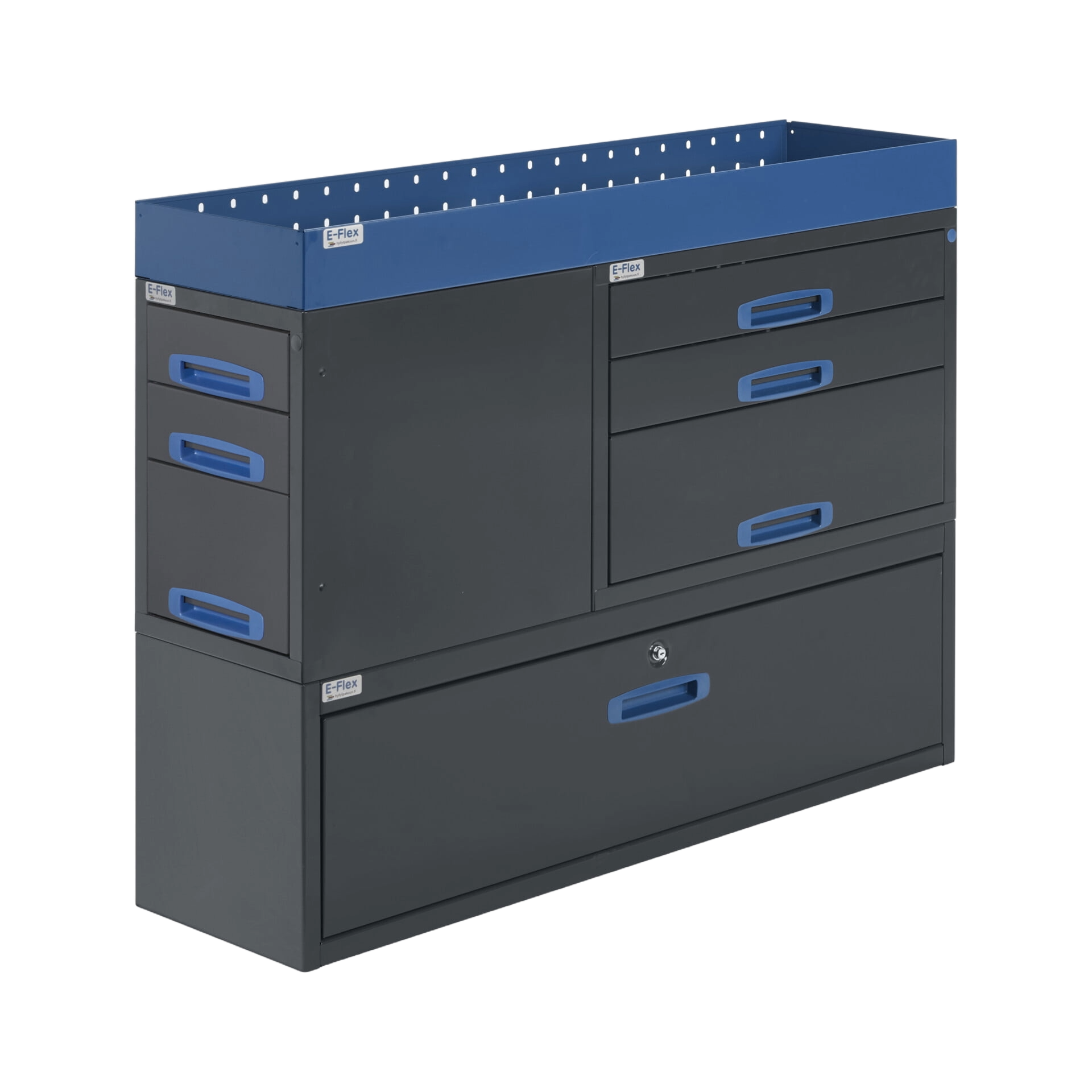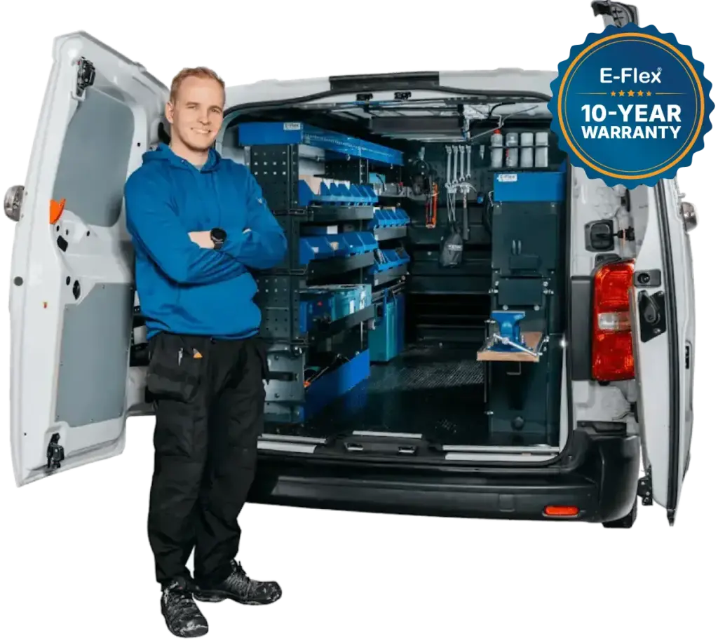 Our range includes complete van shelves, shelving solutions, shelving systems, and storage units in various configurations for vans of all sizes. Since 2010, we have been specialising in van shelving, continuously improving our E-Flex products based on customer feedback. We take pride in offering top-tier storage solutions for van owners.
