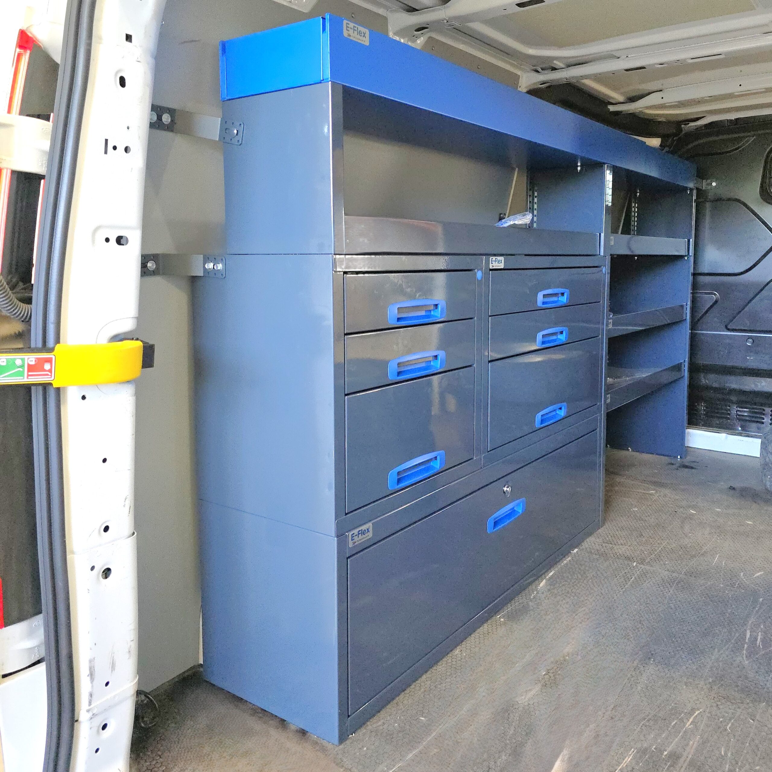 – 230 cm hyllykkö / laatikosto vetolaatikoilla