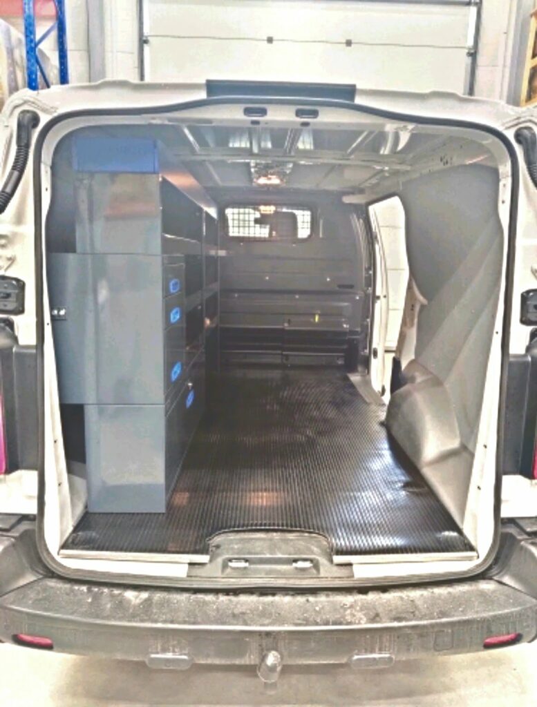Toyota Proace pitkä L2 pakettiauton hyllyt laatikostolla LVI-asentajan käyttöön, asiakaskokemus. Asennus Juvanmalmilla.