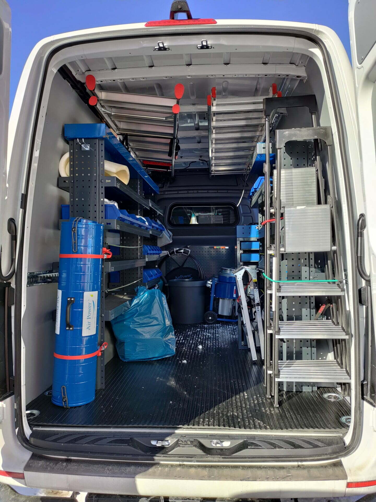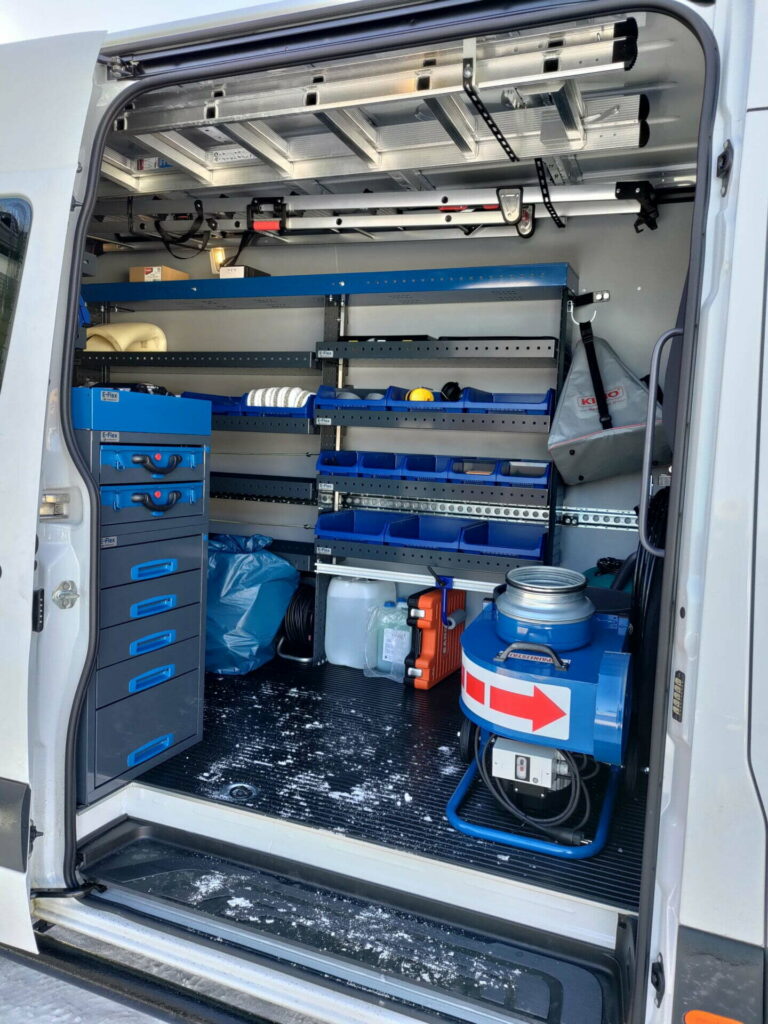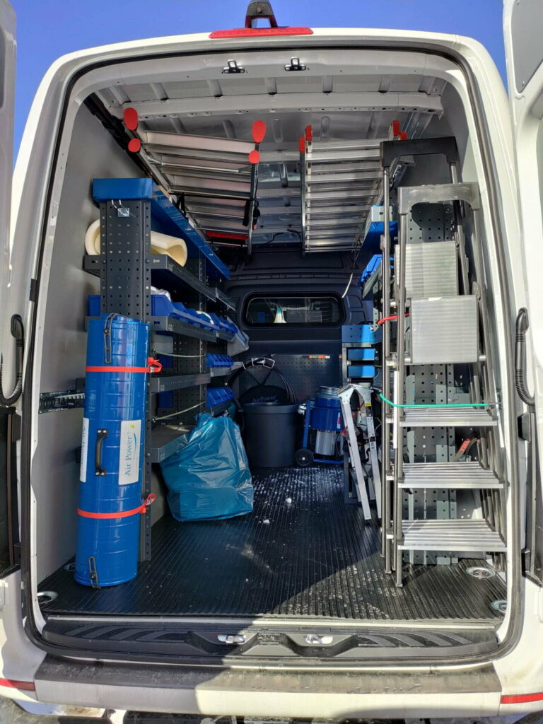 Mercedes-Benz Sprinter hyllyt, asiakaskokemus, LVI-alan yritys. Asennus Juvanmalmilla.