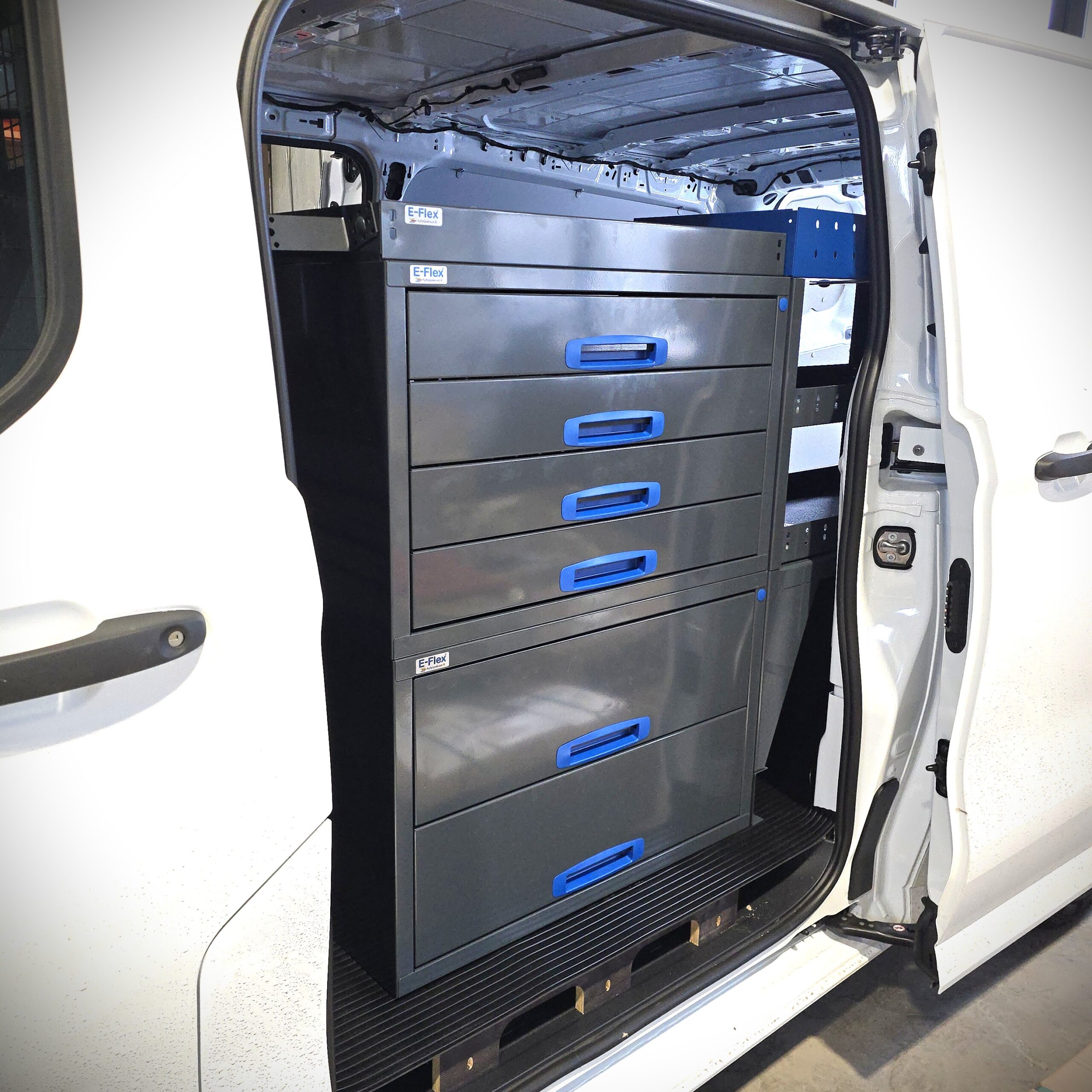 This 76 cm drawer unit with a top shelf is designed for professional van users who require maximum storage efficiency and fast, organised access to tools and components. With a total height of 103 cm and depth of 36 cm, it fits perfectly in vans with sliding doors where quick access and easy movement inside the vehicle are essential.