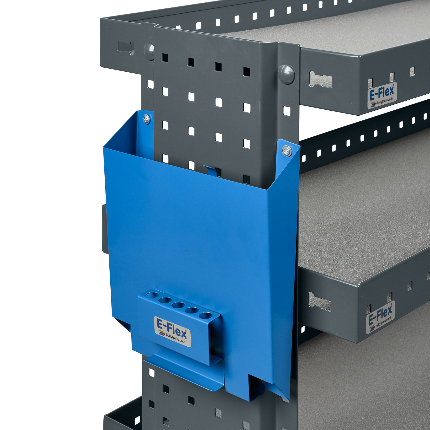 The E-Flex Paper Holder is designed to make life easier for van users. Its compact size makes it an ideal choice for storing A4 documents and pens. With a width of 23 cm, height of 27 cm, and depth of 6 cm, it can be conveniently mounted on the end of a shelf or on the van’s wall.