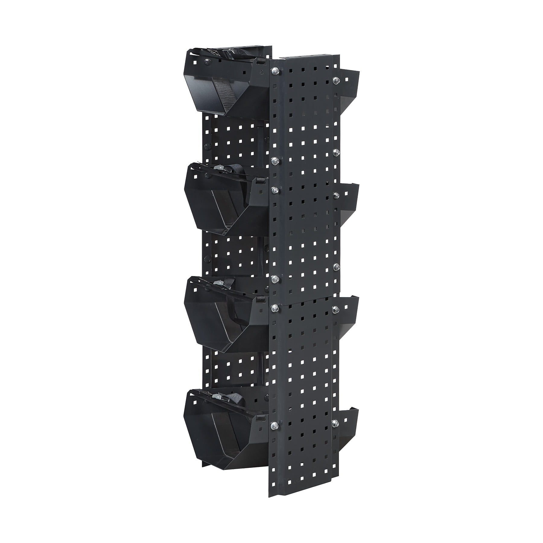 The shelf is 120 cm high and includes four shelf levels with an inner width of 30 cm. It measures 33.5 cm in width and 36 cm in depth, and the height is adjustable in 4 cm increments between 102–144 cm to suit various installation needs. The delivery includes two length-adjustable end panel sets (90–136 cm), an assembly kit, and a vehicle fastening kit, ensuring easy and secure installation.