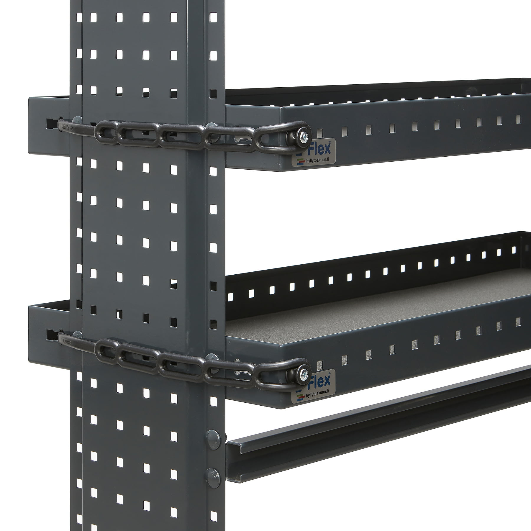 Gummifästesatsen är ett mångsidigt tillbehör för skåpbilar. Med dessa gummifästen kan du enkelt och säkert fixera föremål vid hyllgavlar, på hyllplan eller på perforerade paneler. Basdelen och motknoppen till gummifästena monteras med medföljande genomgående bultar.