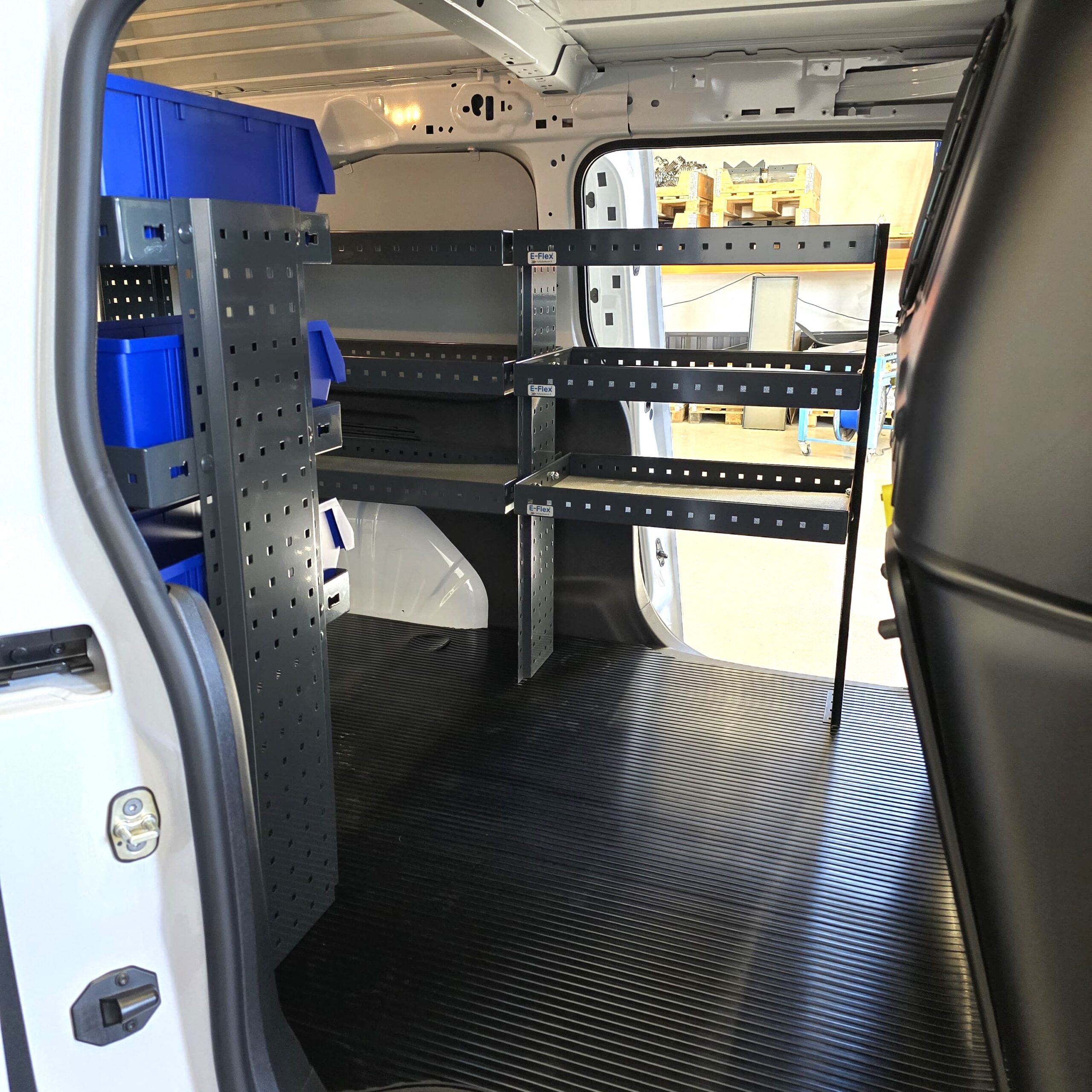 Specialskuren gummimatta för pakettbilar Toyota Proace City L2, med en skjutdörr på höger sida och dubbeldörrar bak. Om din bil har två skjutdörrar kan du själv klippa bort dörrtröskeln på vänster sida med en kniv.